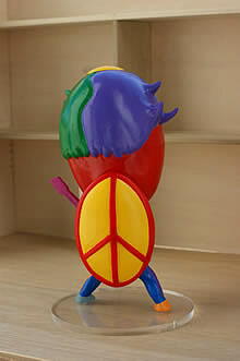 しげしげと見つめる。 カッパシリーズということで、「ピースカッパ」と名付け、大好きなジョン・レノンをイメージして描いたデザインである。 甲羅と皿はピースの象徴のマーク。 サングラスにギターはリッケンバッカー325。 もう、大好きなものをとにかく描き、サイケなイメージを持って、メチャクチャ楽しんで描いた絵だった。